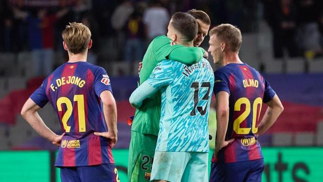 賽前在通往球場(chǎng)的通道中,兩人便熱情地聊起了天。此外,仍在養(yǎng)傷的特爾施特根也走上前來(lái)?yè)肀Я艘聊醽喕?。不過(guò),最令人動(dòng)容的畫面出現(xiàn)在終場(chǎng)哨響后,什琴斯尼在場(chǎng)上再次深情擁抱了這位門將。這是巴塞羅那對(duì)陣埃爾切比賽留下的經(jīng)典瞬間之一。
