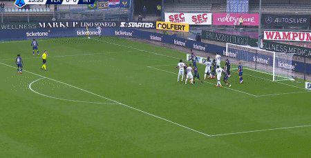 關(guān)鍵進(jìn)球:第16分鐘,恰爾汗奧盧發(fā)出左側(cè)角球,澤林斯基世界波破門